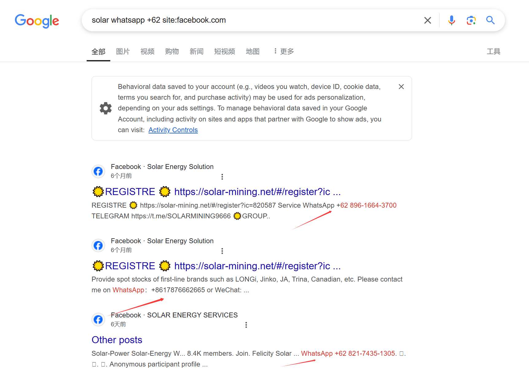 2: 关键字+whatsapp+各国区号+site:社交媒体