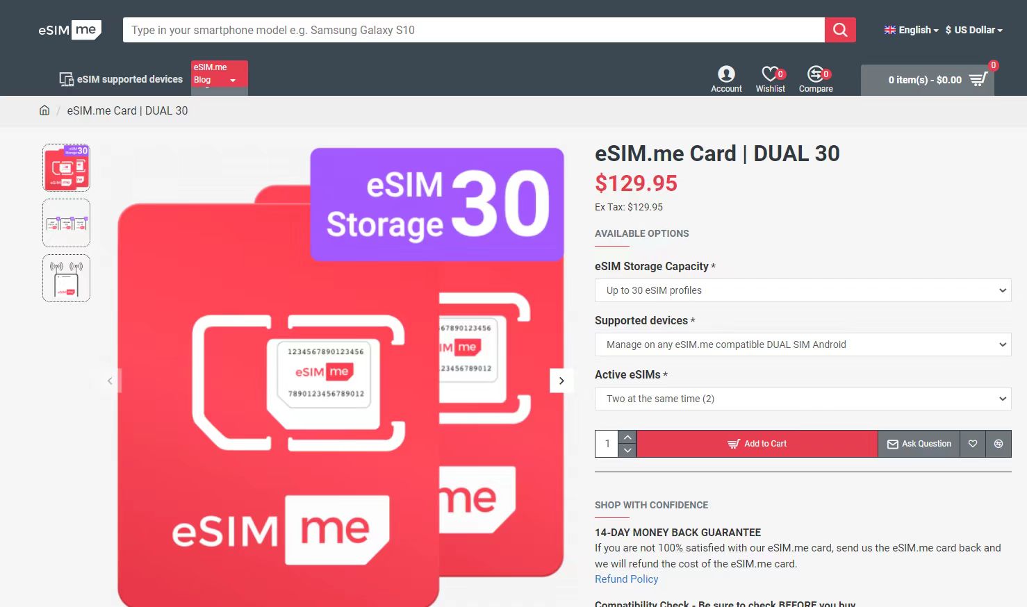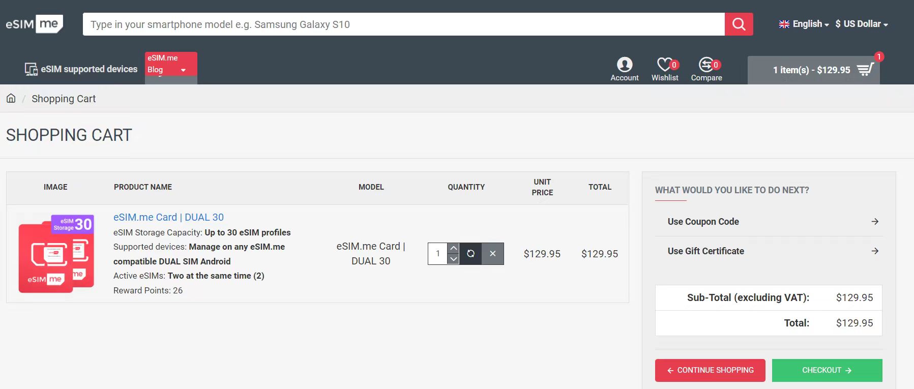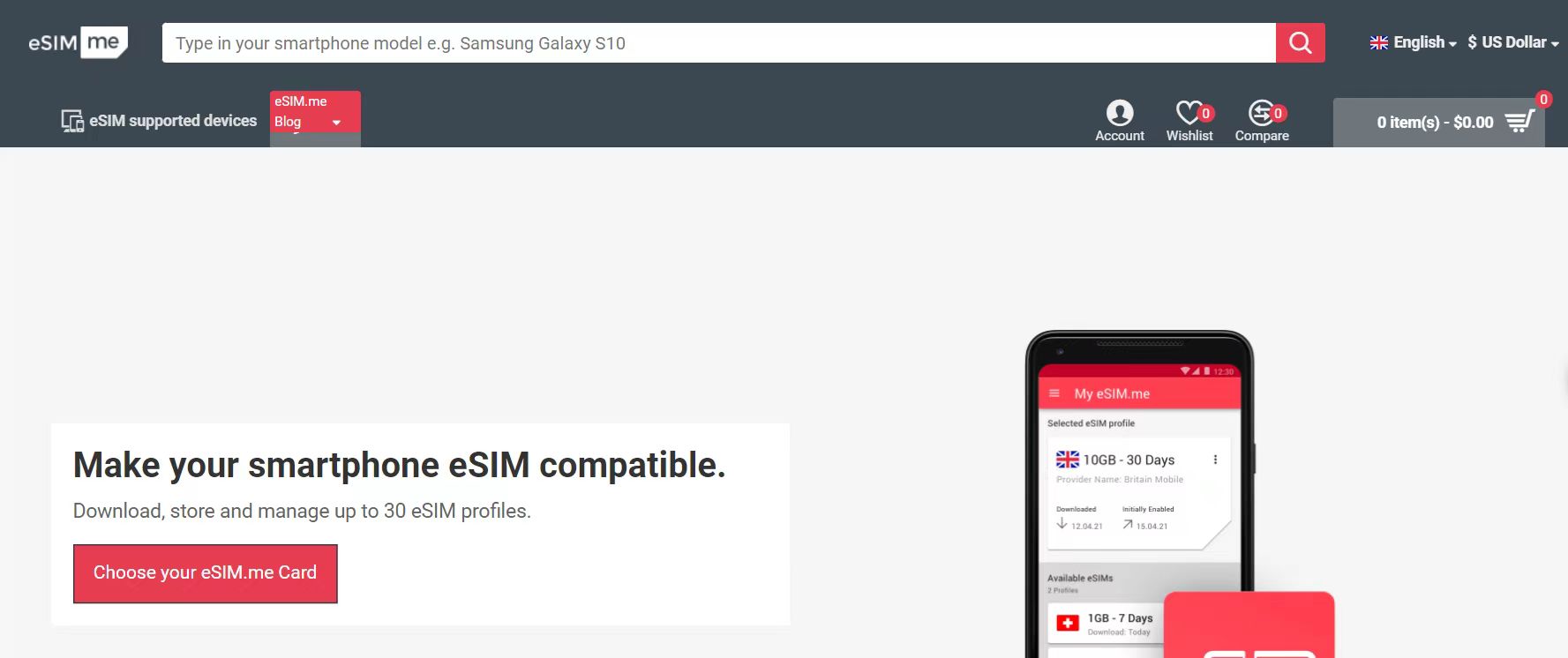 1.打开]esim官网,点击Choose your eSIM.me Card
