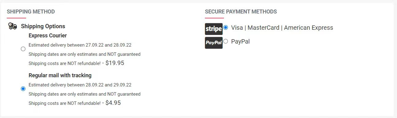 5.选择发货选项,个人认为发到美国地址没必要使用Express Courier,右边选择付款方式