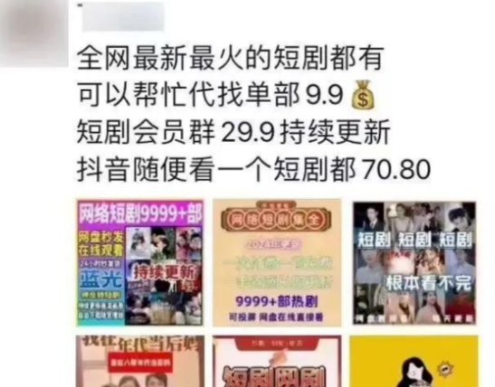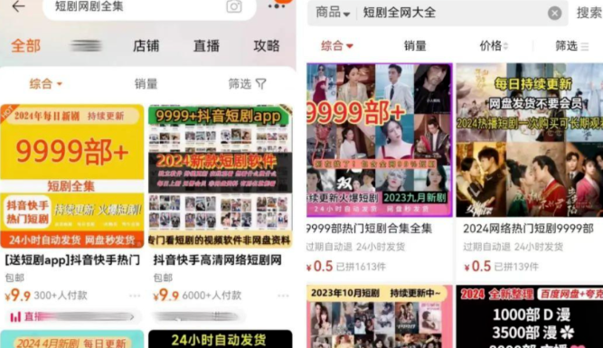首先利用电商平台以低价购入多部短剧合集,然后免费分享。